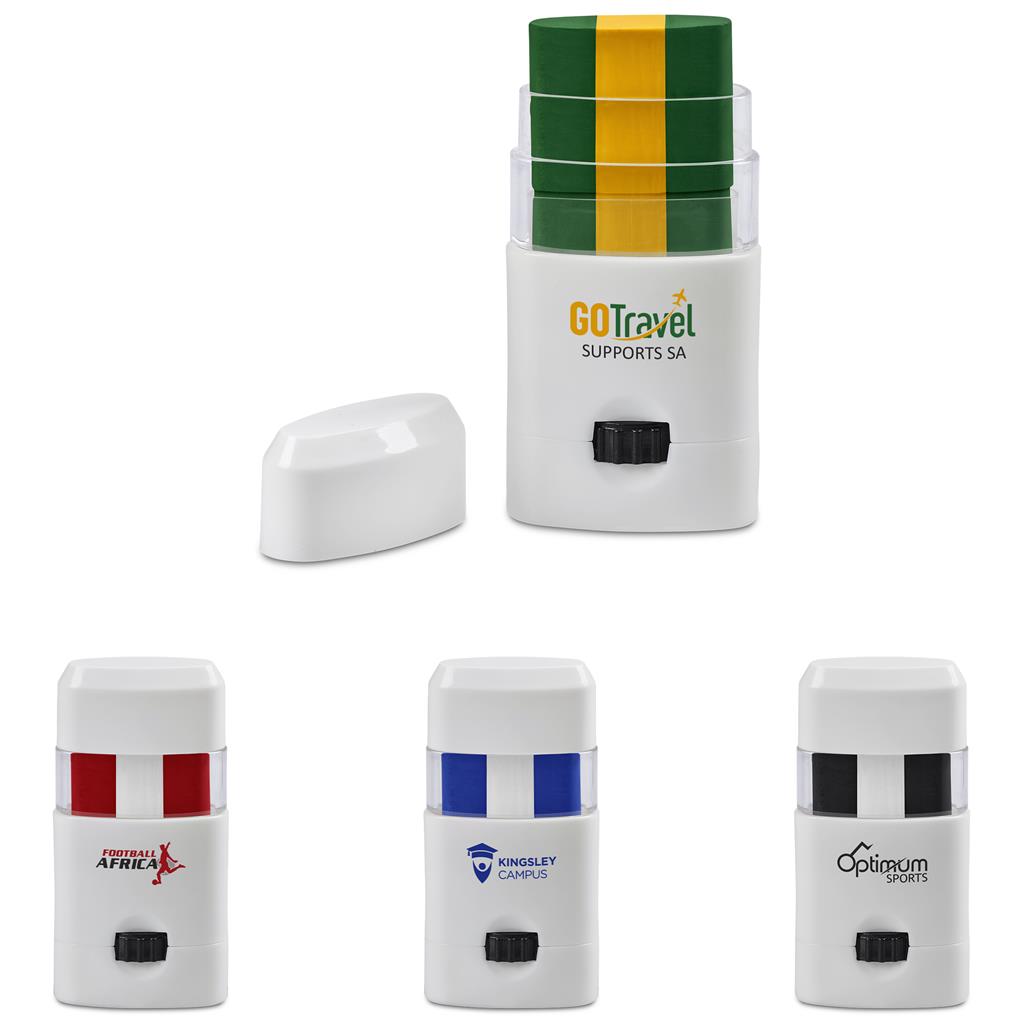 Instant energy for events that thrive on visibility. Skin friendly, water washable face paint in a compact design that travels easily. Simple to apply, easy to remove, and perfect for turning crowds into bold brand supporters.